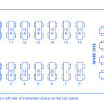 FuseAmperagesCircuits110AA/C Compressor Controls210AAnti-Lock Brake System310ATurn/Hazard Lamps415AInterlock System,Stop Lamps510AInstrument, Cluster, Clock, Radio, Dome and Trunk Lights, ECM, Ignition Key Switch620ARear Defogger7-Not Used815AWiper/Washer910ABack-Up Lamps, Turn/Hazard Lamps1010AInstrument Cluster, Interlock System, Seat Belt and Ignition Key Warnings1110ASupplemental Restraint System (SRS)1215ASupplemental Restraint System (SRS)1315ACigarette Lighter1410ARadio, Clock, Interlock System1510AAutomatic Transaxle1610ABlower Relay, H/Lamp Relay Hyundai Accent 1996 Fuse Panel/Board – Fuse …