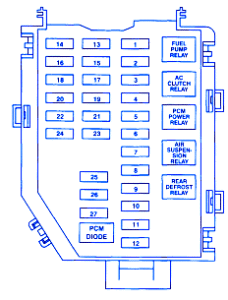 | 21 | 15A | Heated Oxygen Sensor, Solenoids EVAP Canster Vent Solenoid Valve, EGR Vacuum Regulator, EVAP Canster Purge Solenoid |