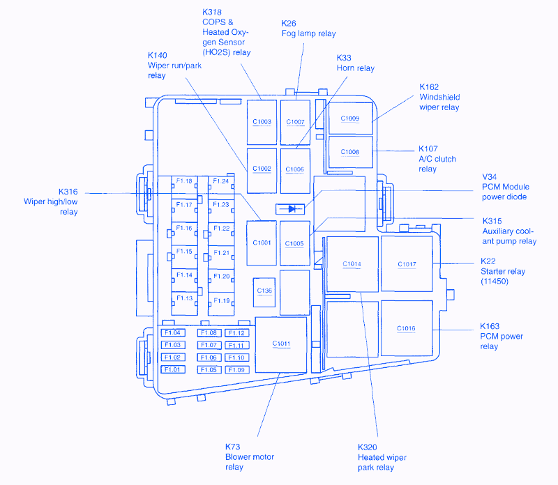 | F1.18 | 40A | PCM Power Relay, COPS & Heated Oxygen Sensor (HO2S) Relay, F1.10 |