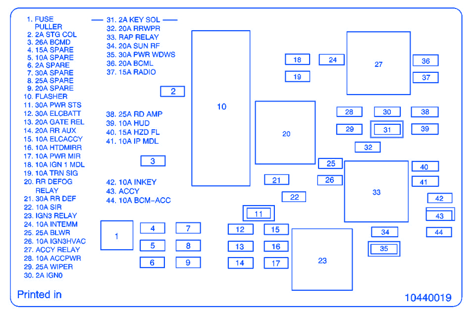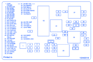 Pontiac Aztek 1999 Main Fuse Panel/Board – Fuse Symbol Map