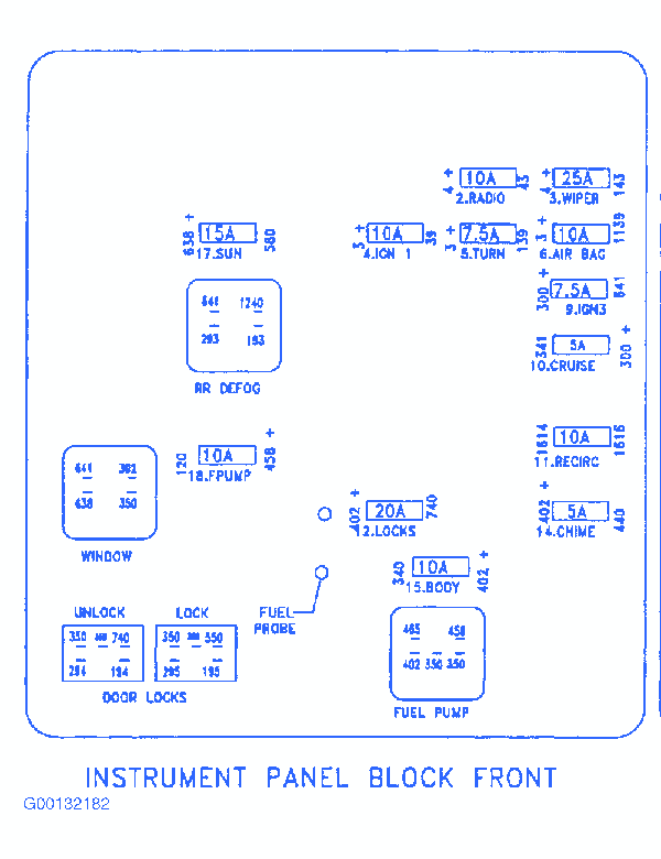 Saturn SW.2 1997 Fuse Panel/Board – Fuse Symbol Map